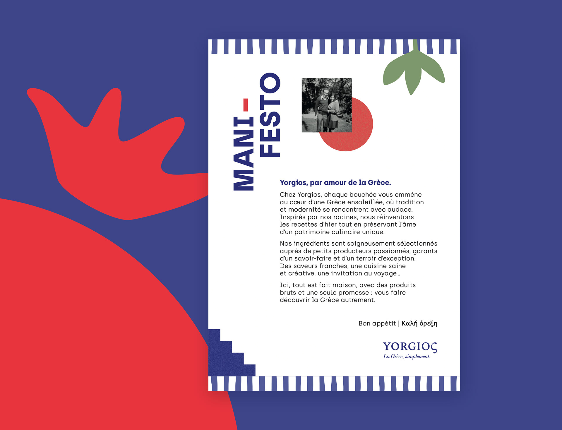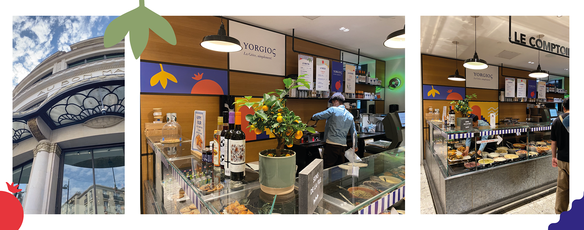 Yorgios est une épicerie / traiteur spécialisée en produits grecs basé à Paris. Alexandre Cozzika, son fondateur, m'a demandé de créer un univers de marque lors de son implantation dans un corner traiteur à la Grande Epicerie de Paris.